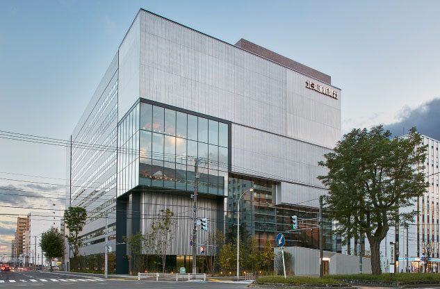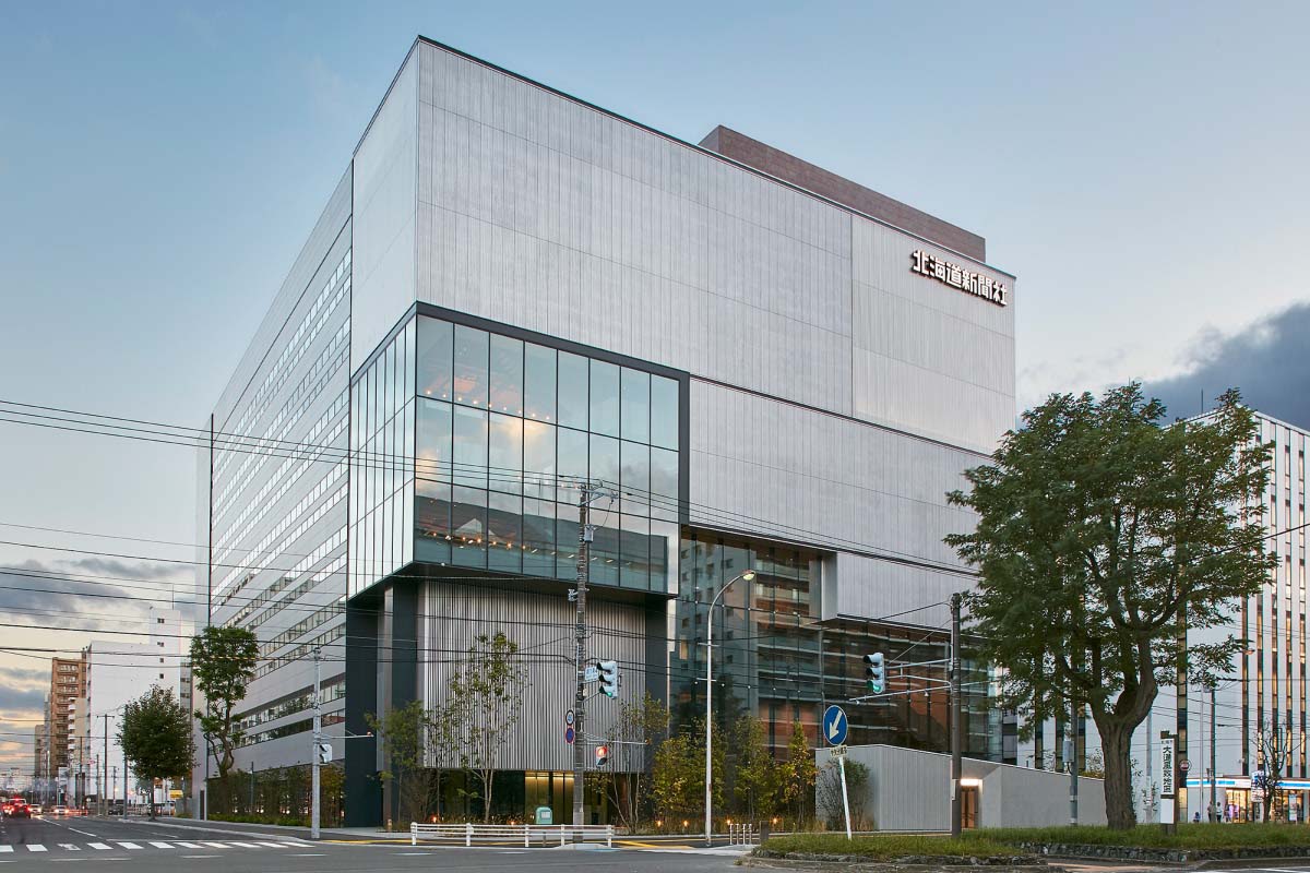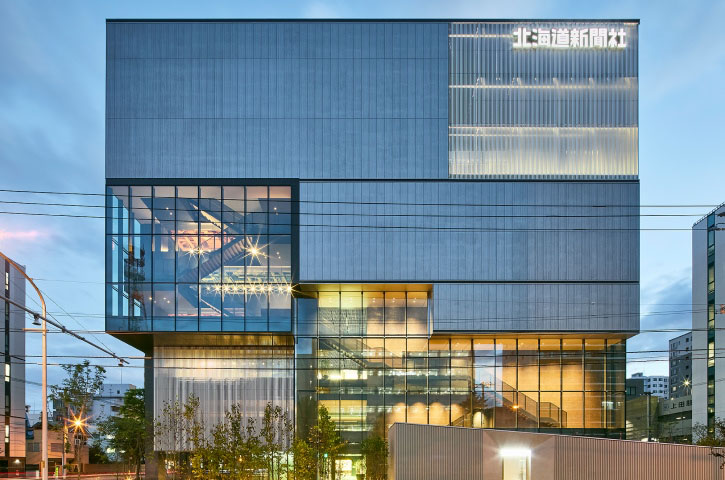 1942年に道内11紙を統合して「北海道新聞」を創刊以来、北海道専門紙として地域や世代を超え、道民の方々の暮らしをより豊かにする情報やサービスを届け続けている株式会社北海道新聞社様。創刊以来初の本社移転も、創成東地区のランドマークとなり、周辺エリアの活性化の起点となることを目指して計画されました。グループ会社、テナントも入居する8階建のビルの1階には、各種イベントや講演会、演奏会などの開催で、最大200人収容できる交流スペース「DO-BOX EAST」を設置。飲食店2店舗の他、最新記事から北海道の今の動きがわかる大型サイネージなど、地域の方々にご利用いただける施設も備えています。
