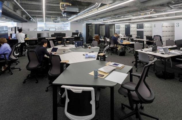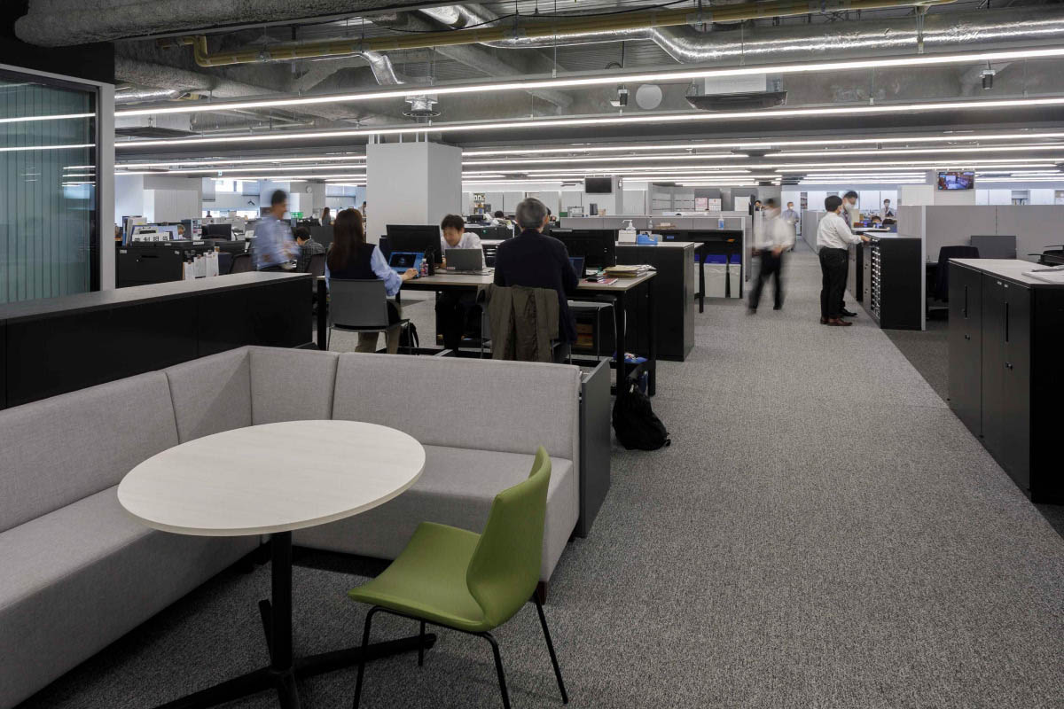 道新様の旧本社は、1979年竣工の建物でもともとは印刷工場を併設していたオフィスのため(印刷工場は1997年に近郊に移転)、構造や設備の面でさまざまな問題があったといいます。「中でも大きな課題は、各部門が個室化しており、部屋を隔てる物理的な壁が心理的にも立ち塞がり、組織のつながりが薄いということでした」と移転当時、不動産開発室でプロジェクトの事務局を務められた大塚敏嗣様。よって、「第二の創業」という意識のもと、ややもすると旧態依然とも指摘される組織風土に風穴を開けるような、新しい働き方の指針を必要としました。
