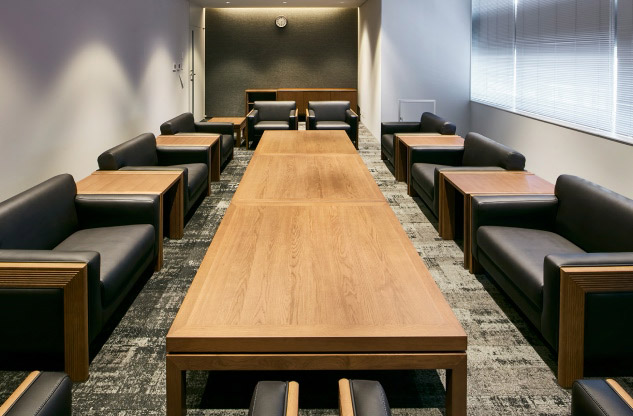 また、本社移転を機に Microsoft365 と全館無線LAN、内線スマホを導入。「ICTは旧オフィスで最も遅れていた部分でした。最初は Teams の操作にも戸惑いましたが、今はこれらのツールなしでは仕事ができない状況です」とヒープ江里子様。なお各会議室にも予約システム、Web会議用機器などICT環境を整え、スムーズかつ有意義な会議ができるご支援をしています。