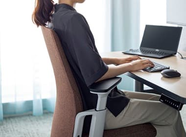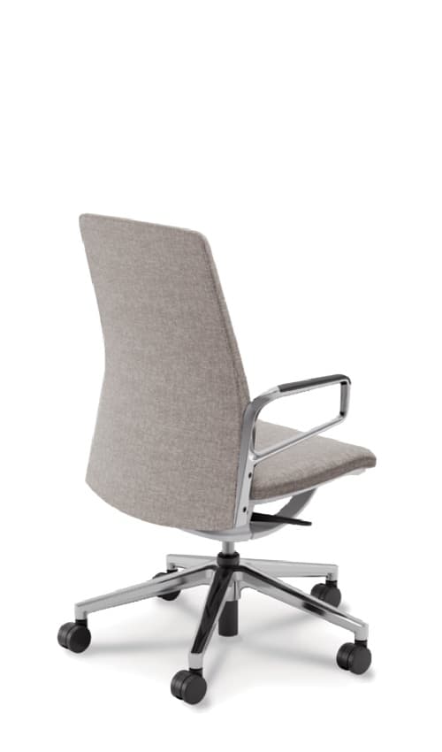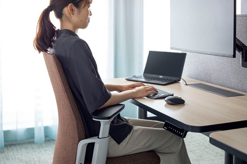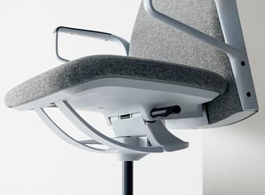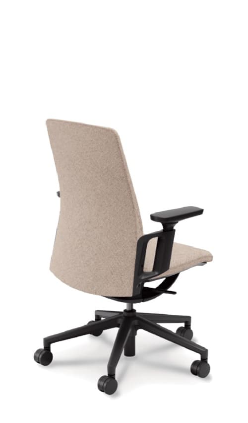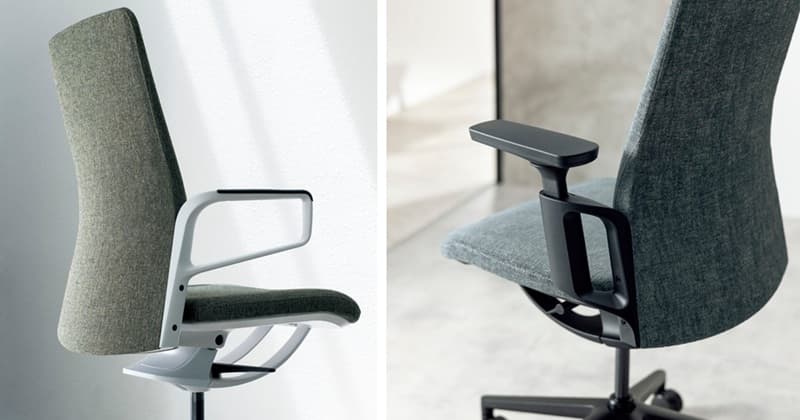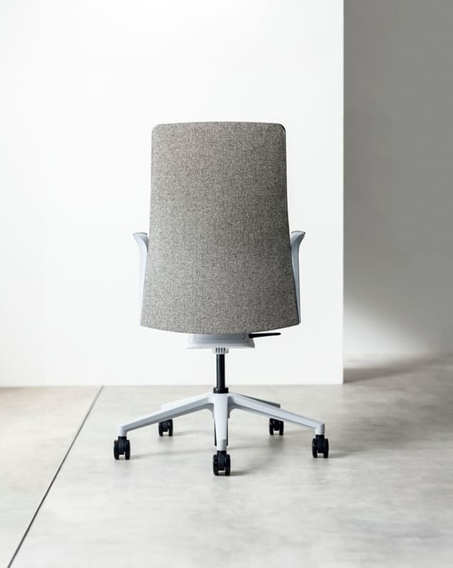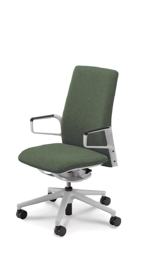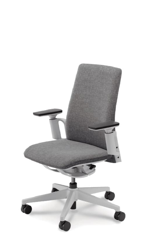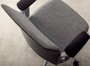 先進的なフレーム式メカによる圧倒的な抜け感と、上質なクロス張りが映える無駄のないシンプルなシートのシルエット。執務姿勢をサポートするエルゴノミクス設計もエレガントかつスマートに。