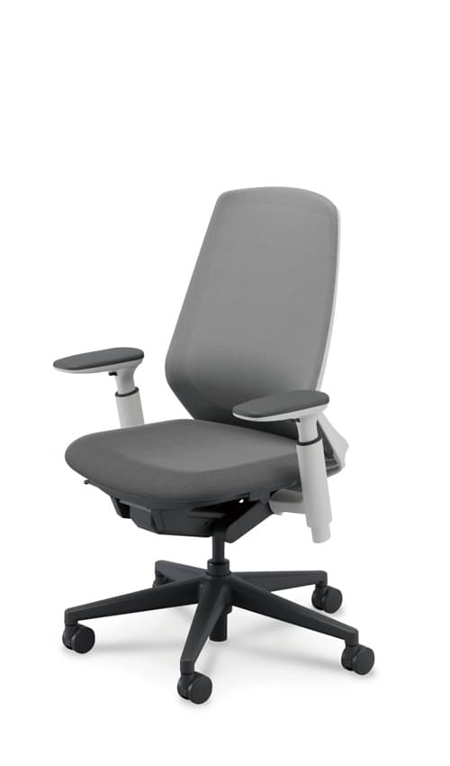 肘置きパッドが身体に寄り添うように、腕を負担の少ない位置で支えます。肩の力を抜いて腕を肘置きに載せられるため、腕全体をデスクに伸ばす必要がなく、猫背の防止、首や肩の疲労軽減に貢献します。