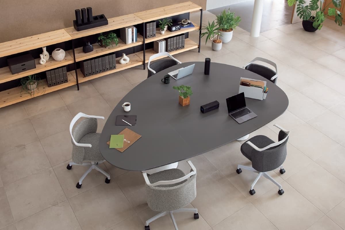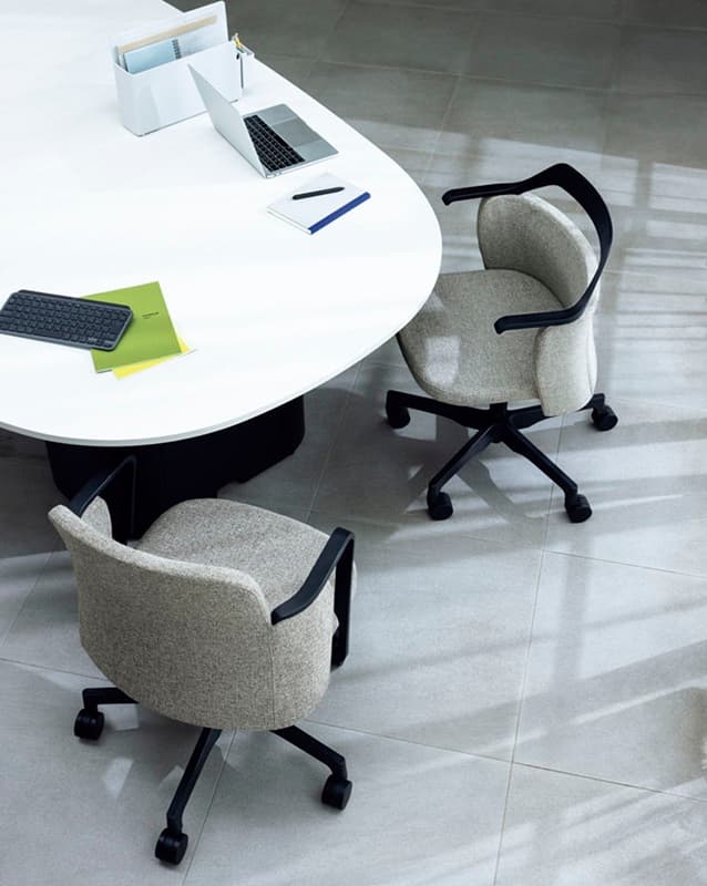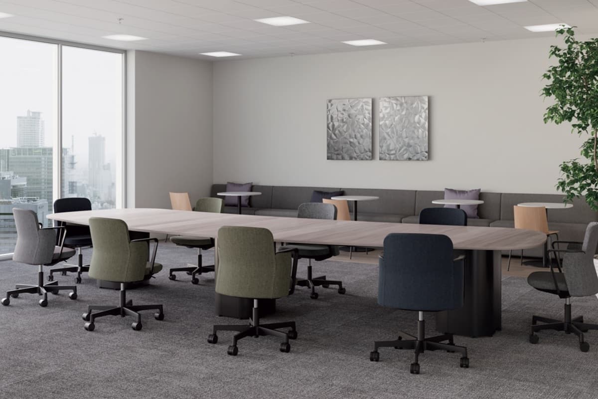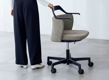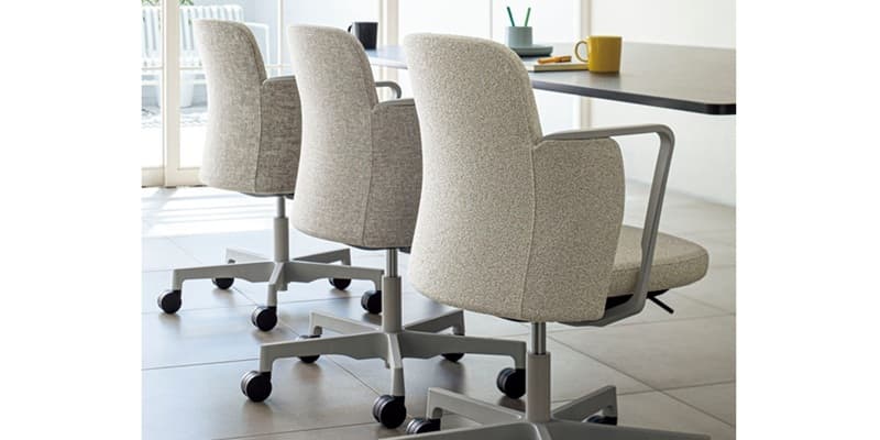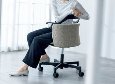 リラックスした雰囲気の執務エリアや、少しフォーマルなコミュニケーションの場面には、心地よいミドルバック背のNestタイプがサポートします。座下まで伸びるループ状のアームレストが、新しくもトラディショナルな雰囲気を醸し出し、さりげなくおもてなしします。