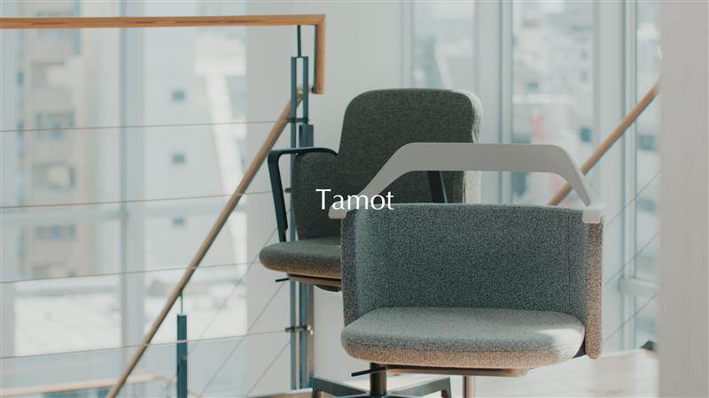 その切り替えの谷から伸びる薄い帯状のアームレストは、緊張感のある軌跡を描きながら、Tamotの上品なグレード感を醸し出すとともにインテリアのホスピタリティを高めてくれます。